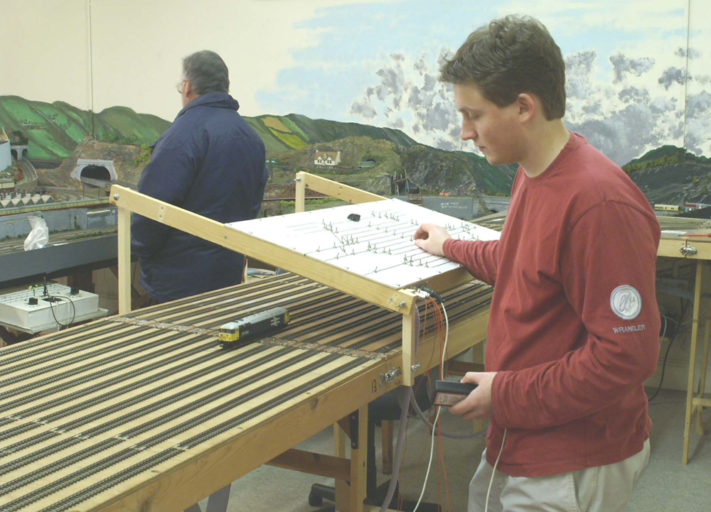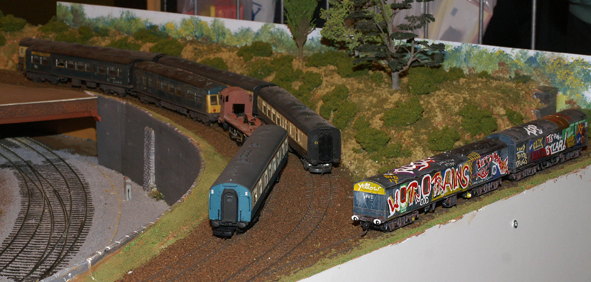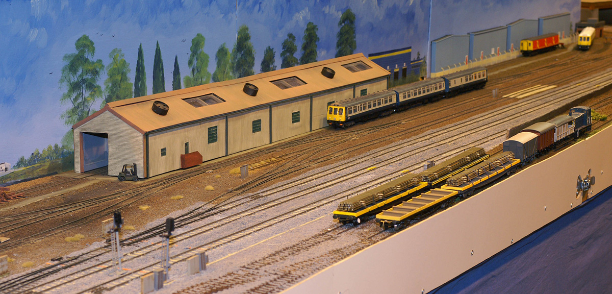 Addersleigh Junction is the name given to the new large OO-gauge layout, which is currently under construction. The layout features a double track main line tailchaser through an extensive fiddle year. The main feature on the scenic side is a DMU service depot. There is also a single track preservation line in the foreground.
