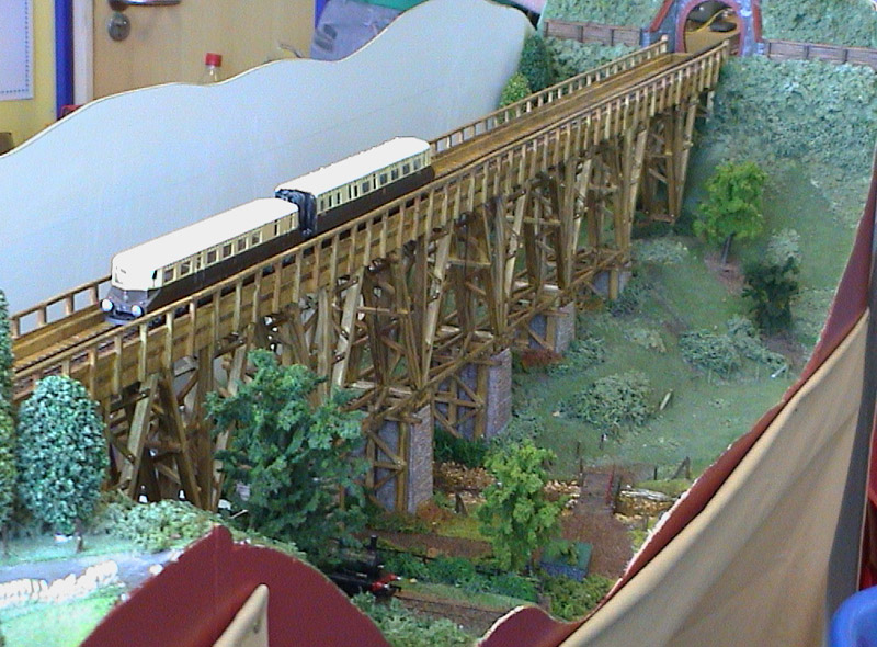 A major new feature is an extension board with a scale model of the Dare Valley viaduct. This was one of the few Brunel wooden viaducts outside of Cornwall and took the Vale of Neath line over the Taff Vale line above Aberdare. Hence coal on the viaduct would be exported via Swansea Docks, whereas coal on the Taff Vale finished up in Cardiff Docks.