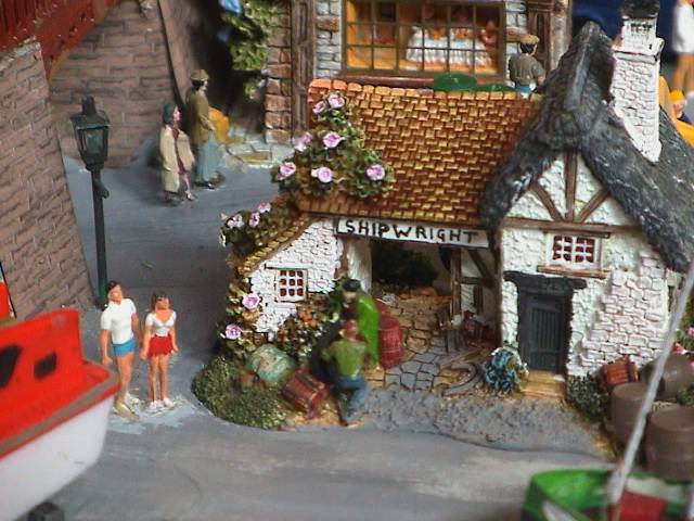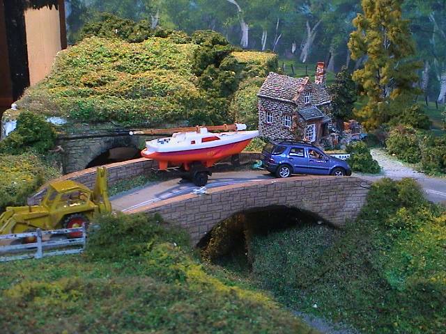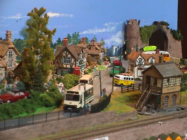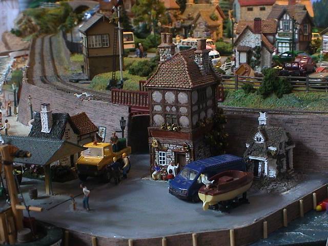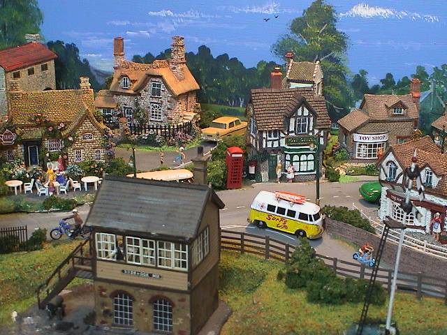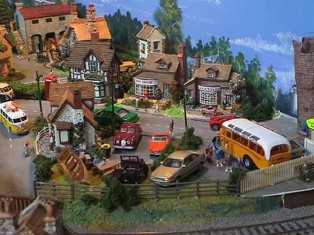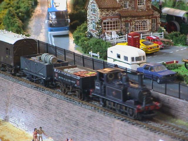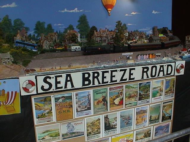 Sea Breeze Road is a fun layout depicting an imaginary sea-side village with a single track line running on top of the sea wall. Some delightful cameos have been built into this wonderfully simple layout by our railway artist member. Most of the buildings are commercial plaster models, but they have been blended together, along with the die-cast cars and other items in a most convincing way.