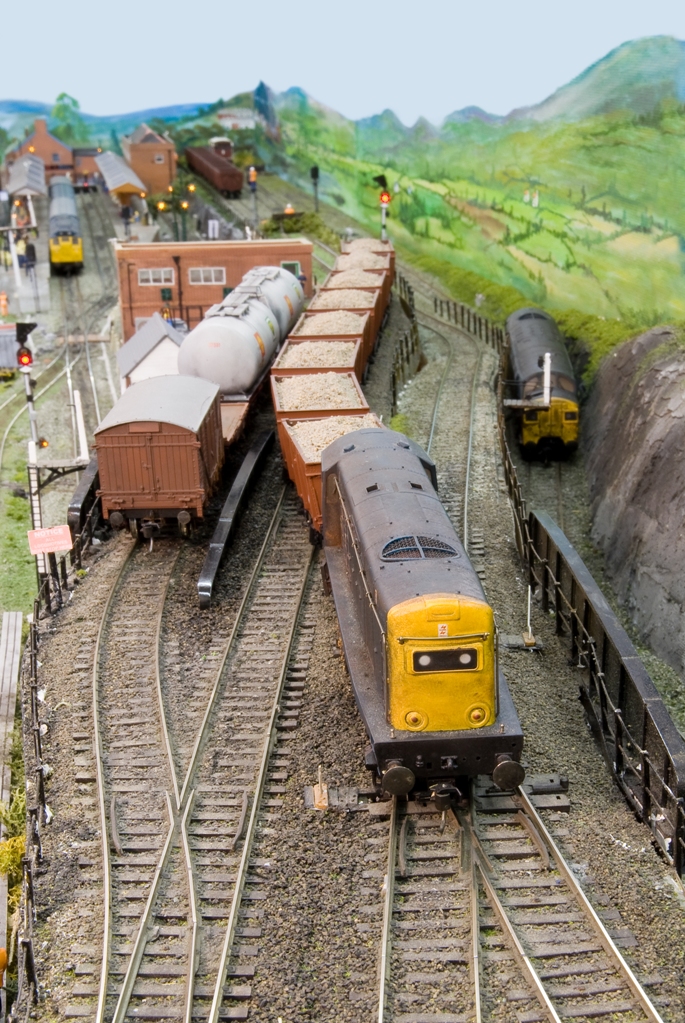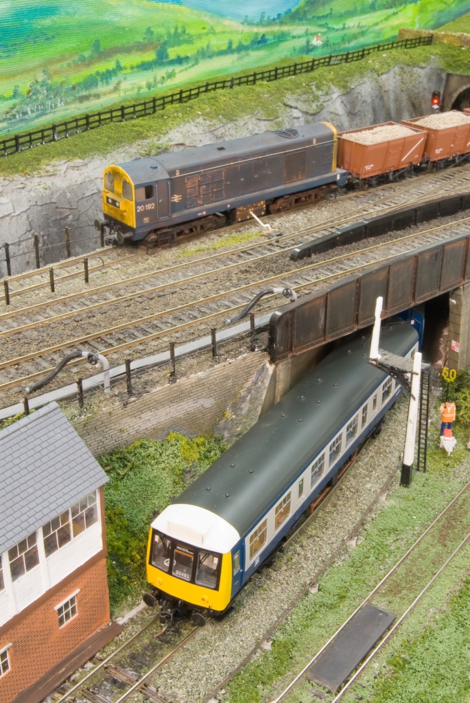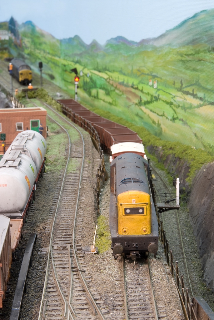 The quarry loco brings the empties up from the reception siding on the middle level, prior to driving them back up to the quarry.