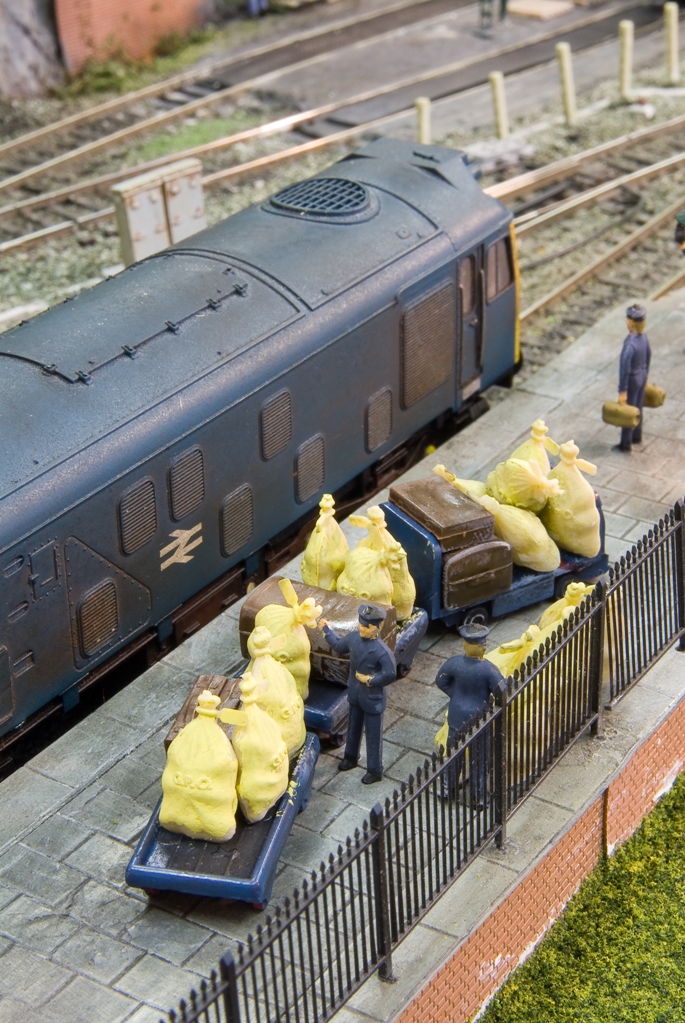 Mailbags and other parcels waiting on the main platform to be loaded onto the parcels train.
