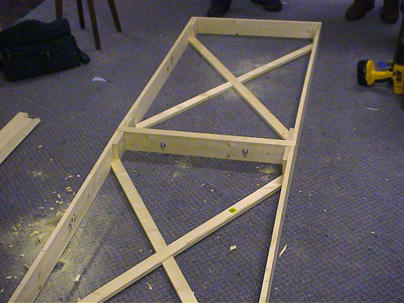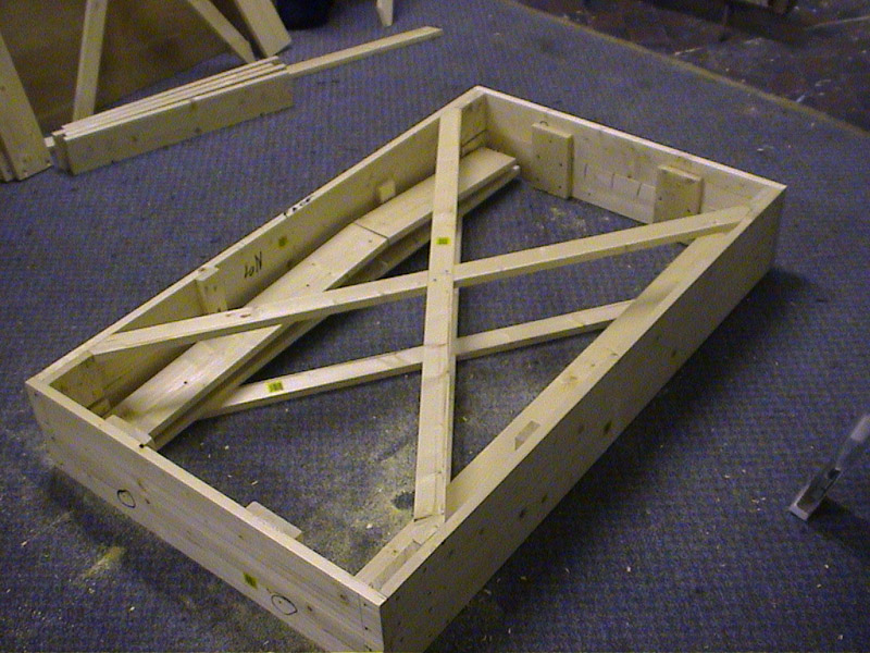 Cut two diagonal bracing pieces to fit from lighter timber, using a groove joint where they cross.