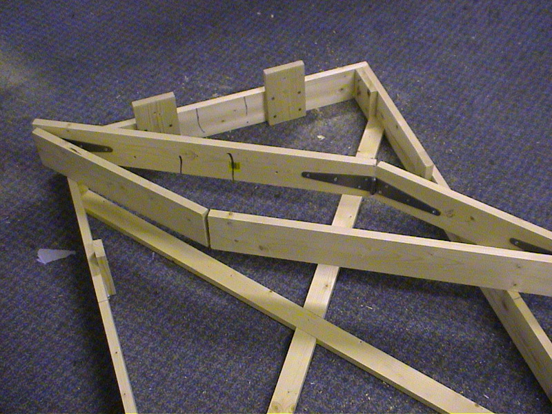 Make two folding frames out of the 4 by 1 inch timber 1 foot 6 by 2 foot 6. Use long hinges in the corners, so that the frame can fold flat. |