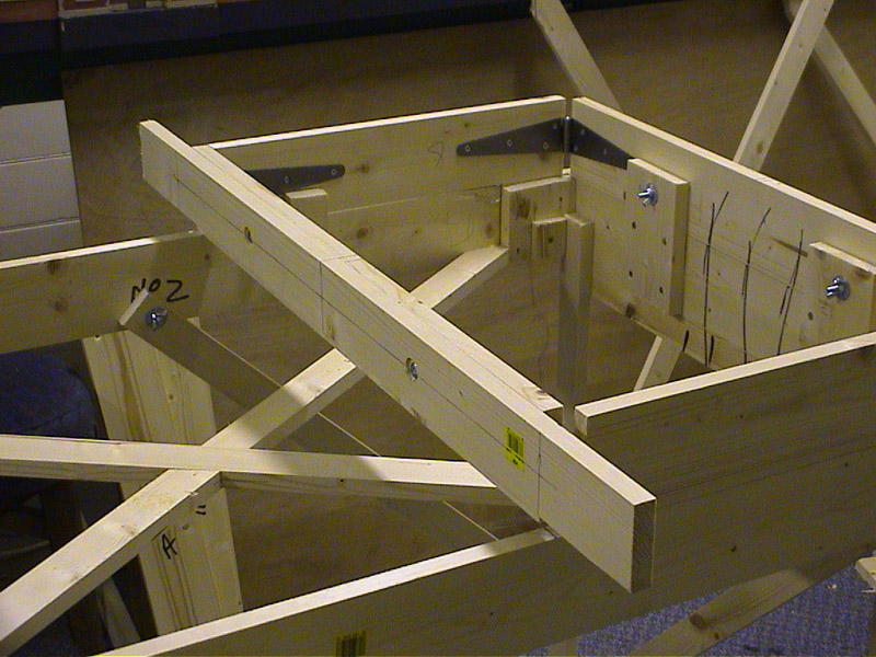 | An extra piece of 4in x 1in timber 3 foot 3 inches long is bolted to the centre face of each of the small boxes to act as the 'locking plate board'.