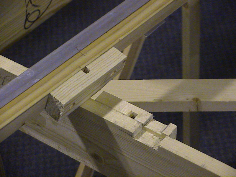 This shows the underside of the turntable, with a central piece of timber to support the central bolt through turntable. Battons are fixed near the edges to locate into the main frame extensions. ( . |