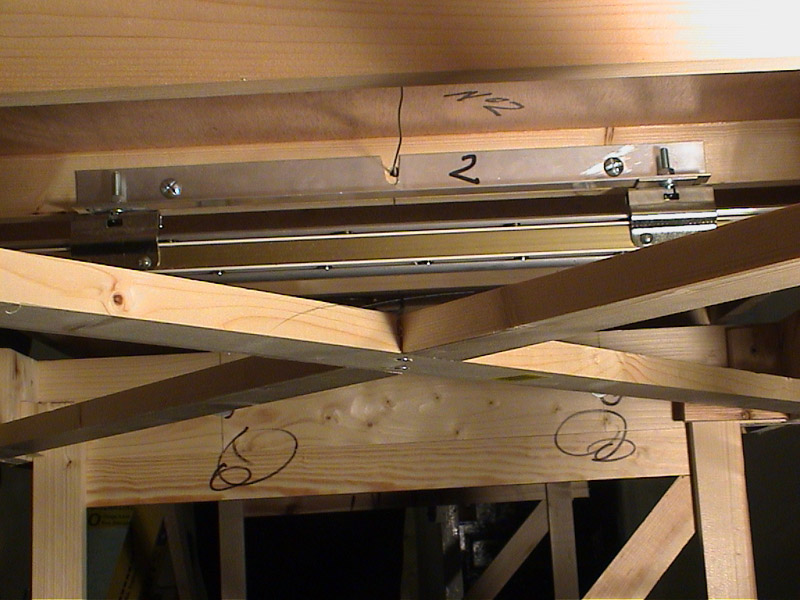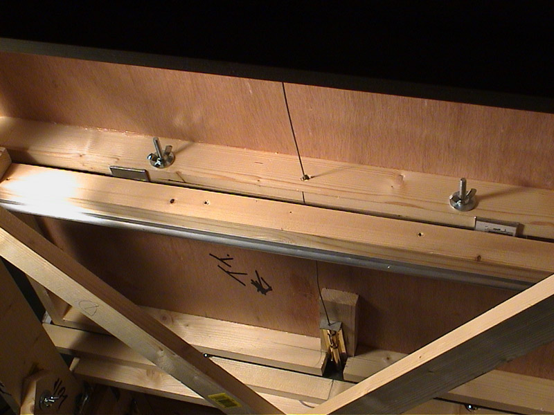 The sliding top can now be put in place and bolted to the slide arms. The views below taken underneath the traverser show the top fixed in place, with the bolt wires in situ.