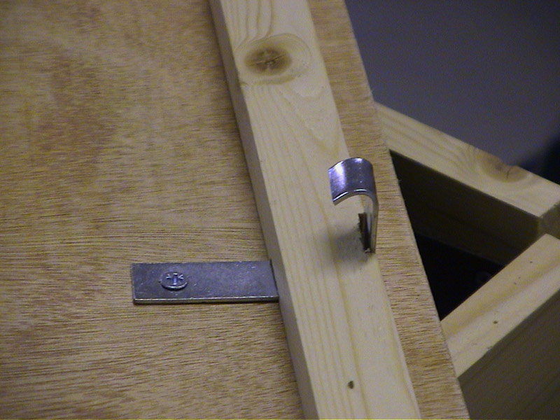 A clip is fashioned from a standard DIY 50mm angle bracket. The pictures below show a close up of the final clip and the corresponding bulldog clip on the main frame box.