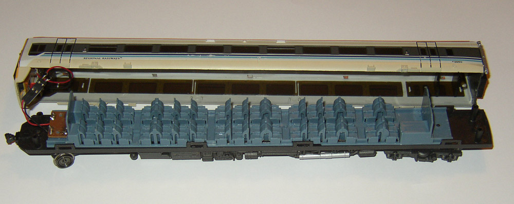 Attach the seating unit to the chassis, ensuring that there is a small loop of wire below the chassis to allow for bogie swing.